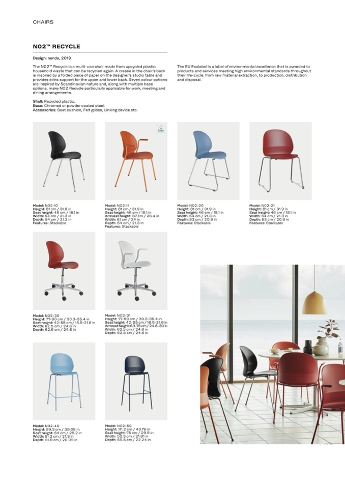 The N02TM Recycle is a multi-use chair made from upcycled plastic