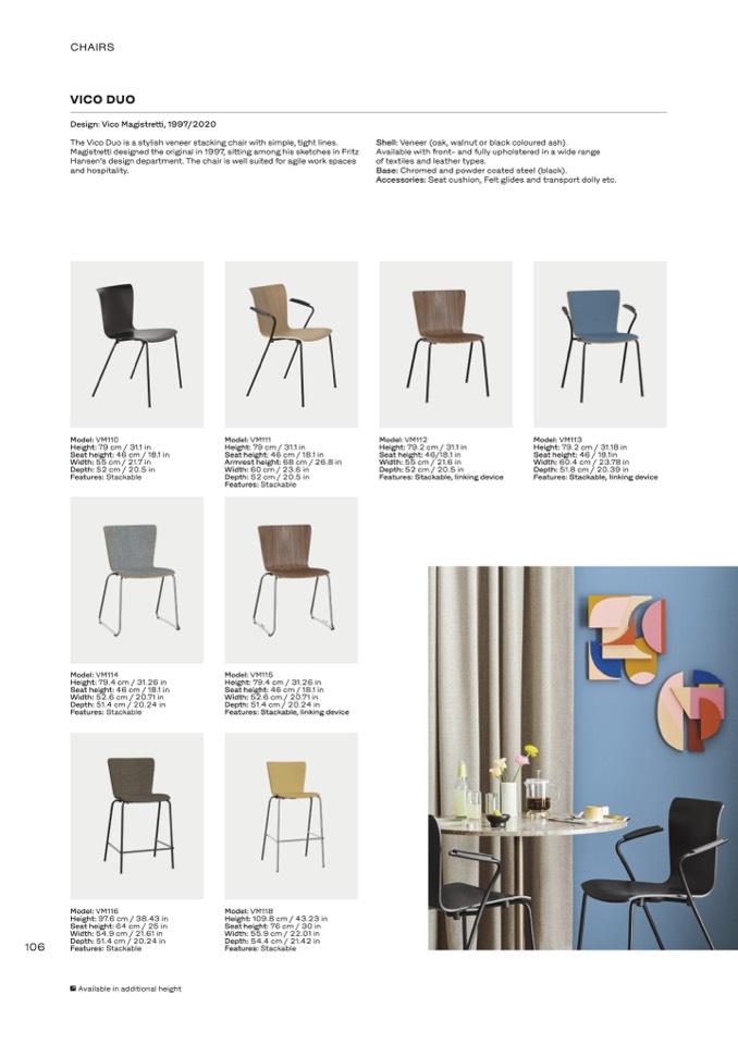 The Vico Duo is a stylish veneer stacking chair with simple, tight lines.