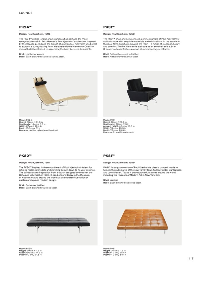 and comfort. The PK31 series is available as an armchair and a 2- or