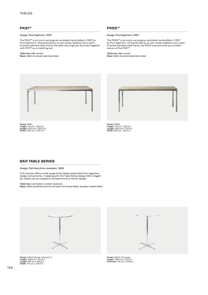 Fritz Hansen offers a wide range of bar tables assembled from legendary