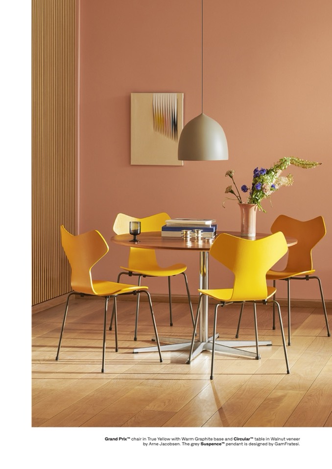 by Arne Jacobsen. The grey SuspenceTM pendant is designed by GamFratesi.