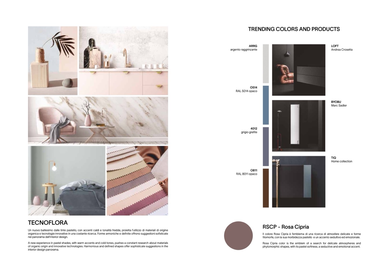 A new experience in pastel shades, with warm accents and cold tones, pushes a constant research about materials