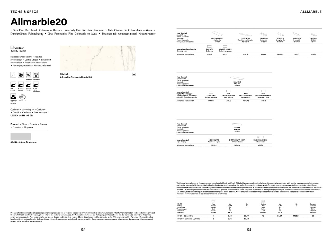 la colocación de suelos elevados de la versión de 20 mm de espesor, consulte la web www.marazzi.it • Дополнительную информацию об установке фальшполов 20 мм толщиной
