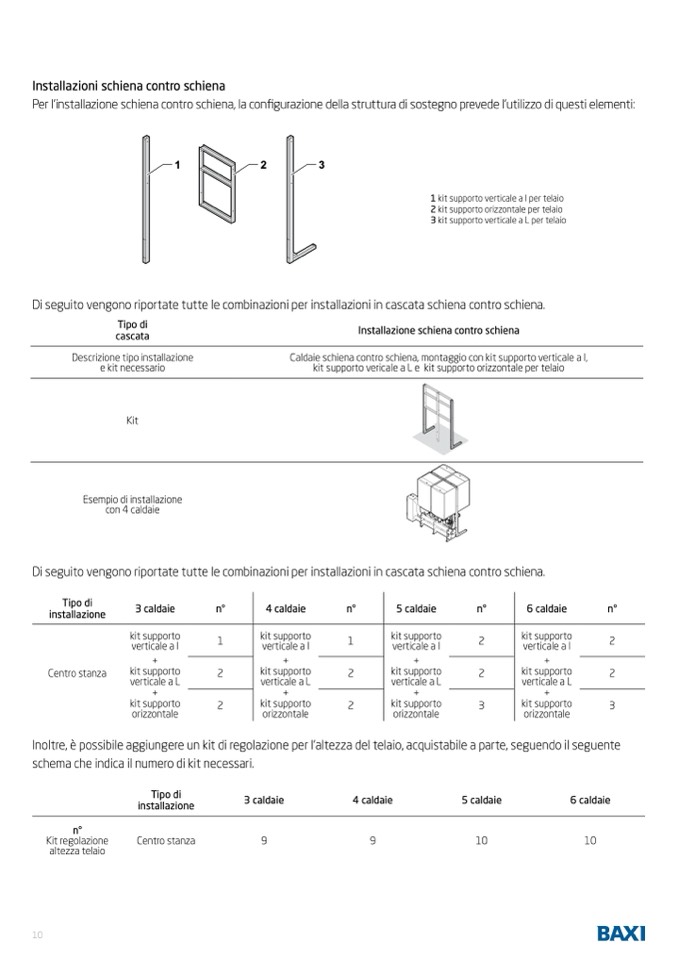 Caldaie schiena contro schiena, montaggio con kit supporto verticale a I,