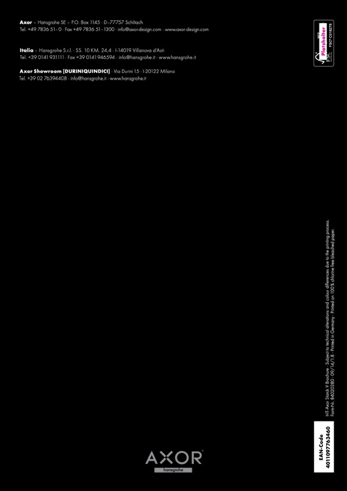 Axor – Hansgrohe SE – P.O. Box 1145 · D–77757 Schiltach