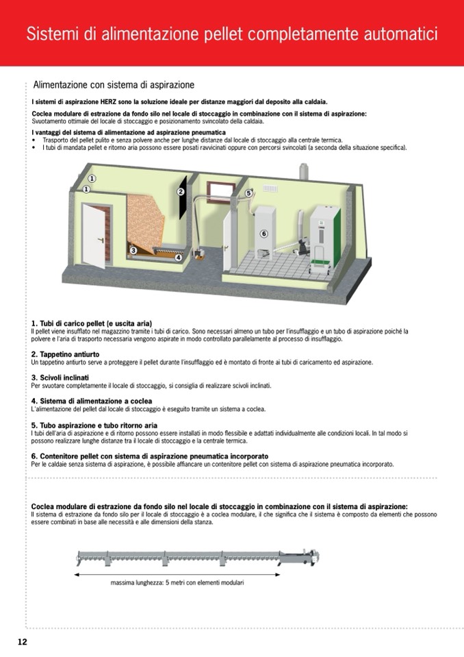 • Trasporto del pellet pulito e senza polvere anche per lunghe distanze dal locale di stoccaggio alla centrale termica.