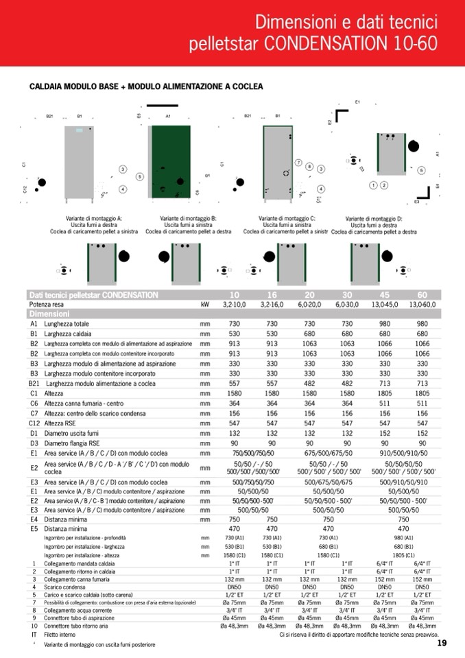 Coclea di caricamento pellet a sinistraCoclea di caricamento pellet a destra