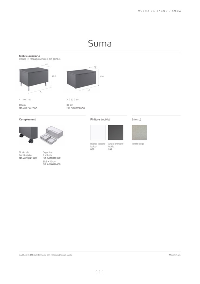 Sostituire le XXX del riferimento con il codice di finitura scelto .