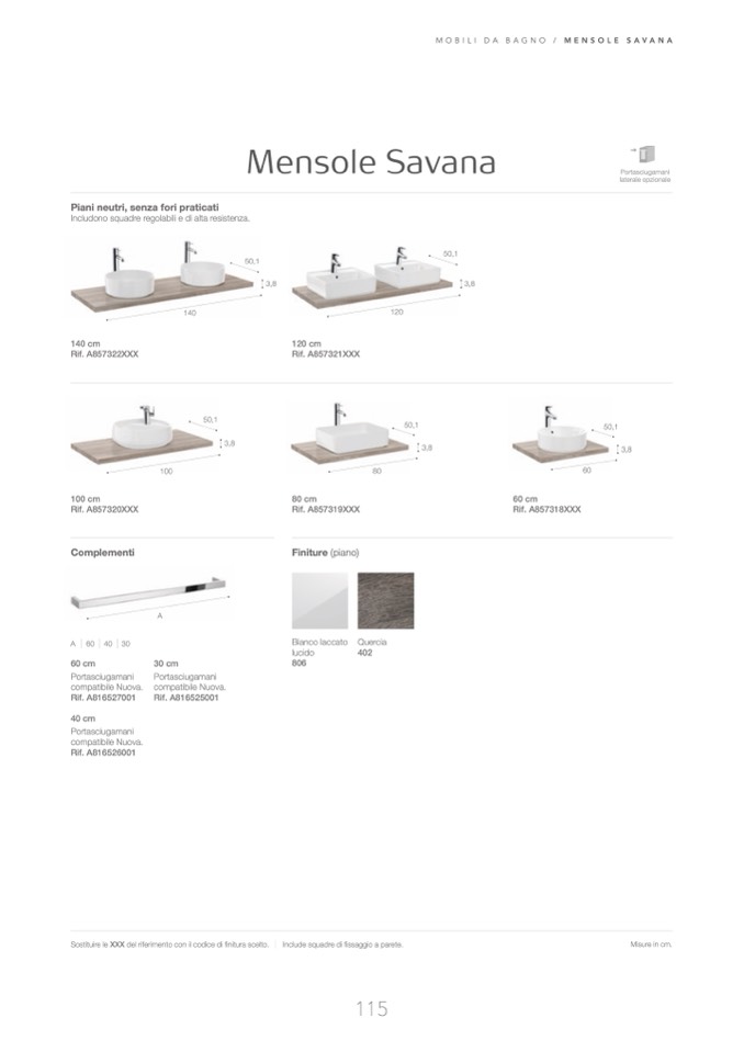 Sostituire le XXX del riferimento con il codice di finitura scelto .