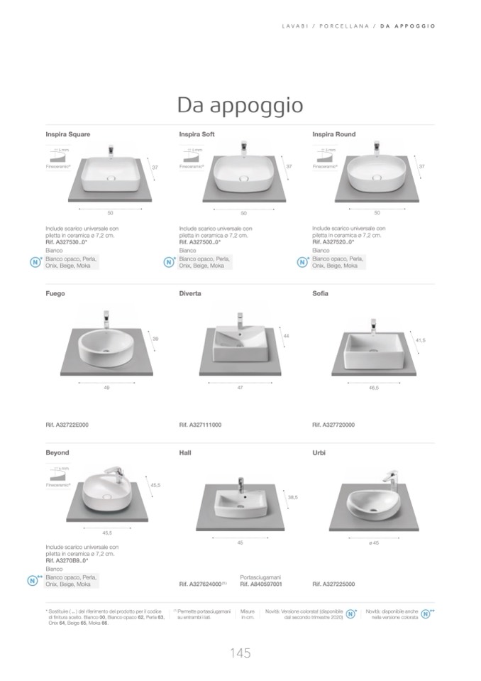 di finitura scelto . Bianco 00, Bianco opaco 62, Perla 63,