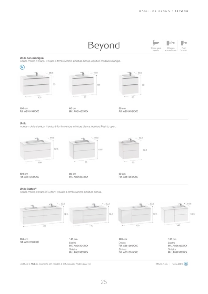 Sostituire le XXX del riferimento con il codice di finitura scelto . (Vedere pag . 29)