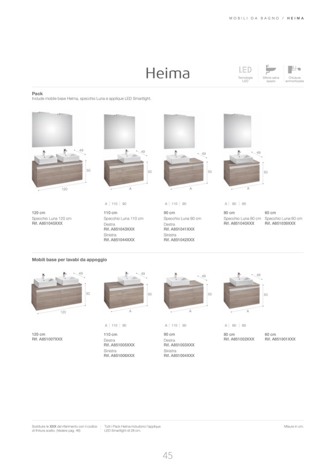 Include mobile base Heima, specchio Luna e applique LED Smartlight .
