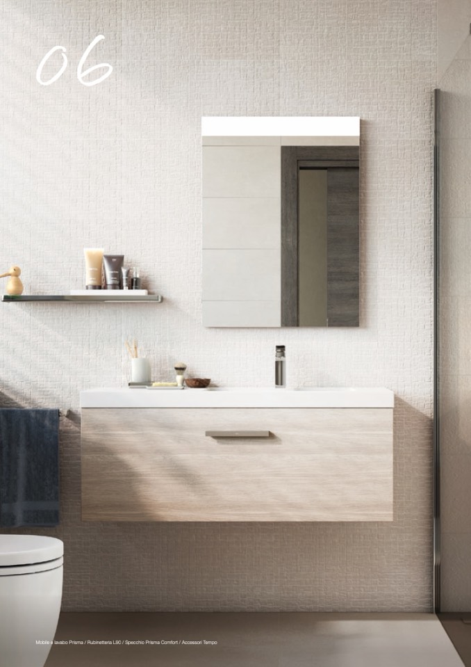 Mobile e lavabo Prisma / Rubinetteria L90 / Specchio Prisma Comfort / Accessori Tempo