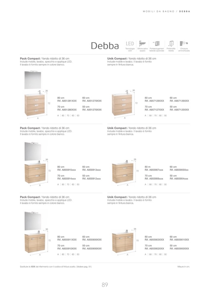 Sostituire le XXX del riferimento con il codice di finitura scelto . (Vedere pag . 91)