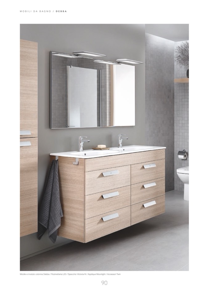 Mobile e modulo colonna Debba / Rubinetteria L20 / Specchio Victoria-N / Applique Moonlight / Accessori Twin