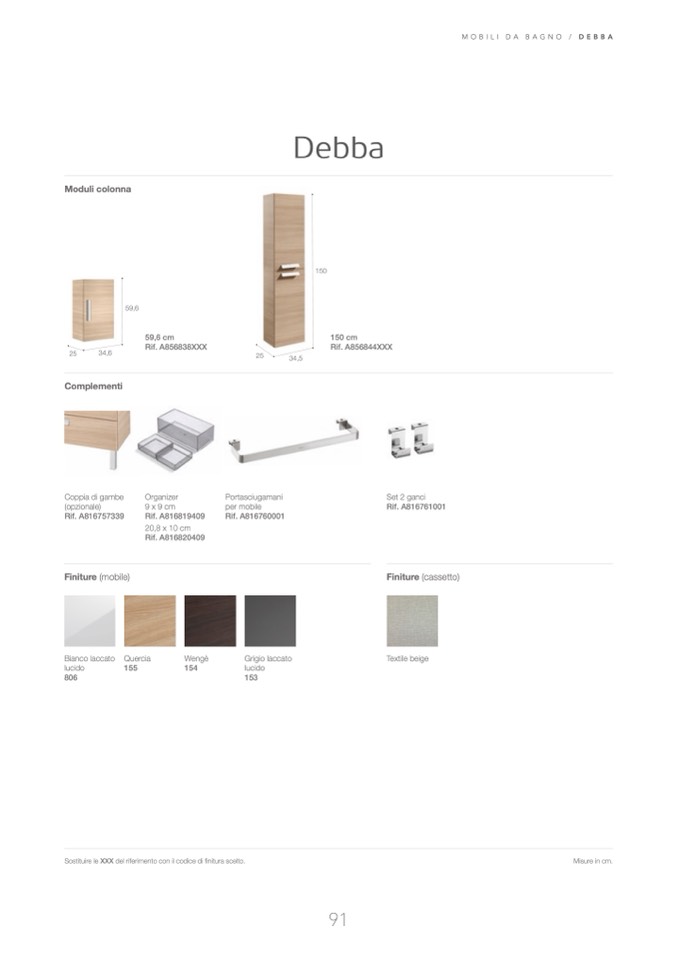 Sostituire le XXX del riferimento con il codice di finitura scelto .