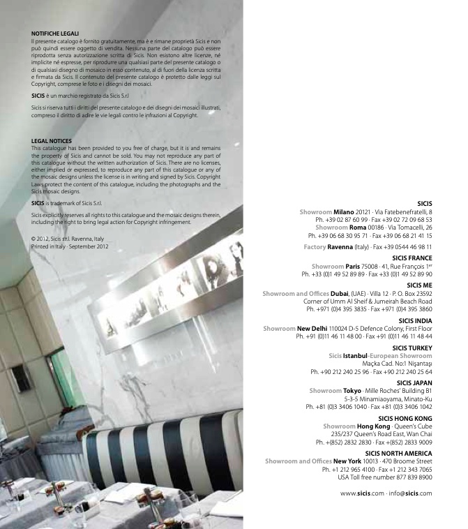 this catalogue without the written authorization of Sicis. There are no licenses,