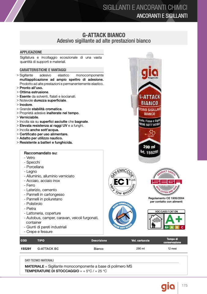 MATERIALE = Sigillante monocomponente a base di polimero MS
