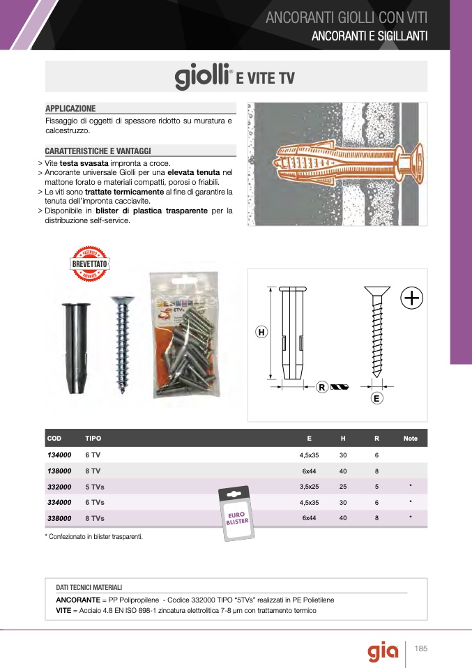 > Ancorante universale Giolli per una elevata tenuta nel