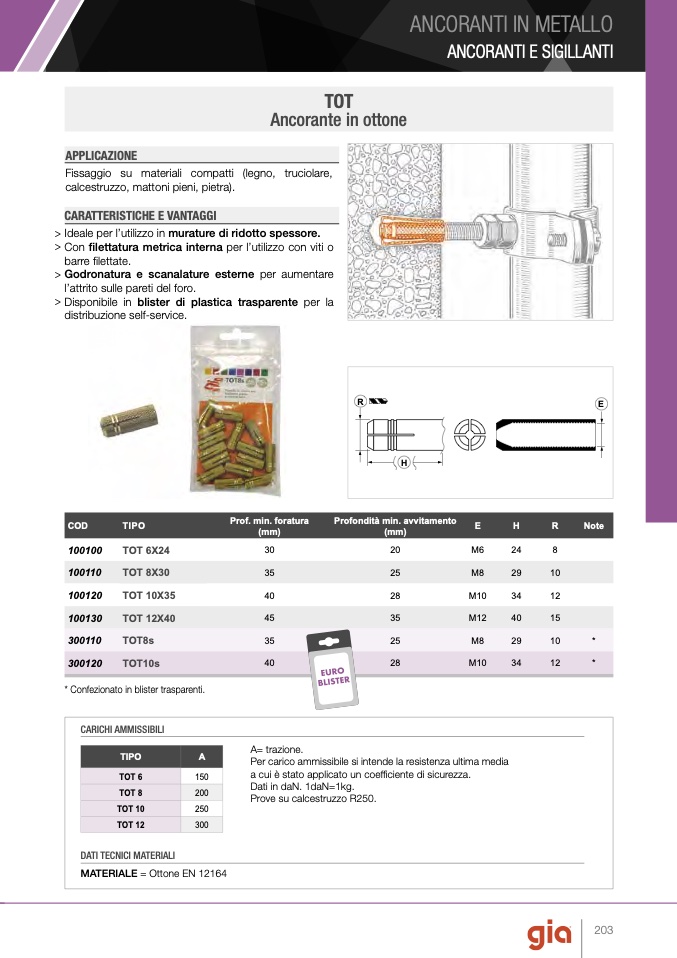 > Ideale per l’utilizzo in murature di ridotto spessore.