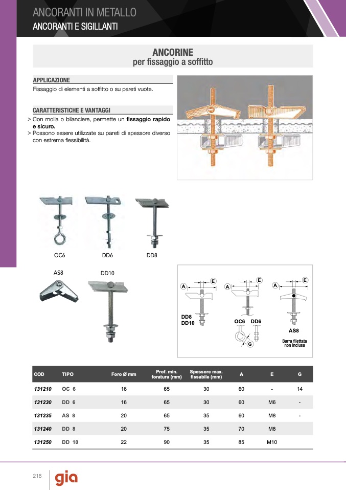Fissaggio di elementi a soffitto o su pareti vuote.