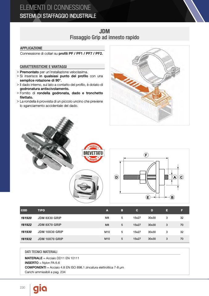 Connessione di collari su profili PF / PF1 / PF7 / PF2.
