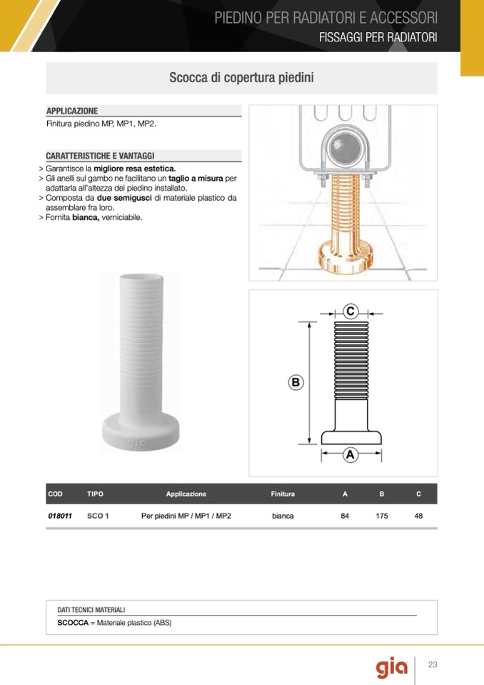Finitura piedino MP, MP1, MP2.