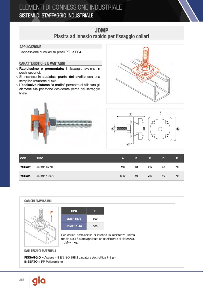 FISSAGGIO = Acciaio 4.8 EN ISO 898.1 zincatura elettrolitica 7-8 μm