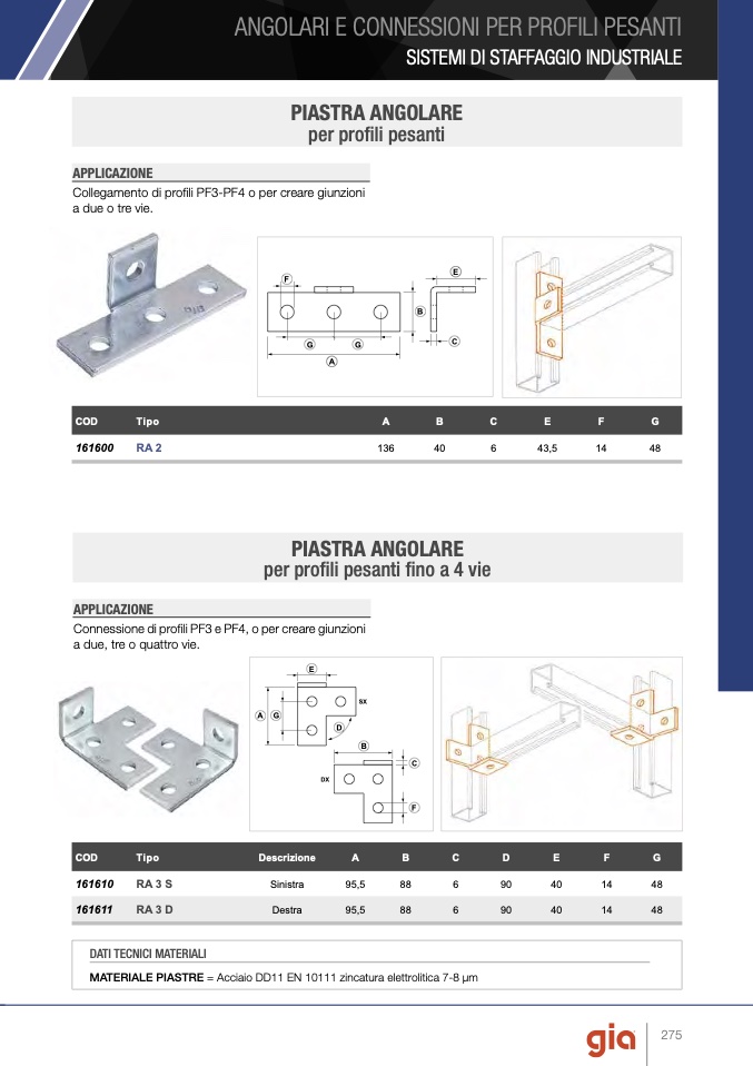 MATERIALE PIASTRE = Acciaio DD11 EN 10111 zincatura elettrolitica 7-8 μm
