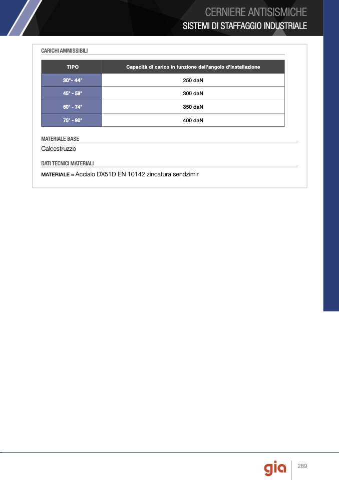 Capacità di carico in funzione dell’angolo d’installazione