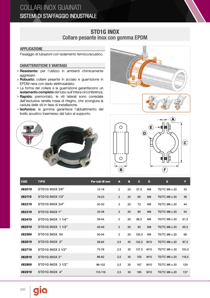 Fissaggio di tubazioni con isolamento termico/acustico.