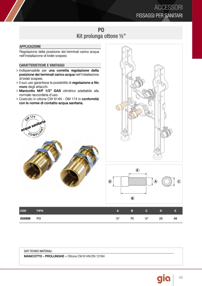 > Costruito in ottone CW 614N - DM 174 in conformità