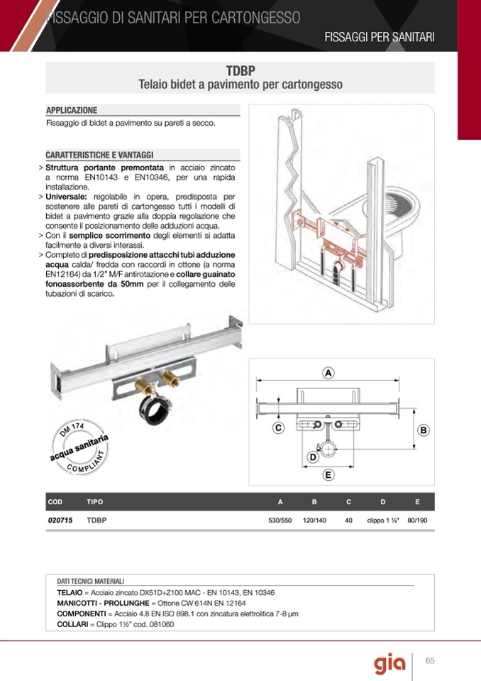 COMPONENTI = Acciaio 4.8 EN ISO 898.1 con zincatura elettrolitica 7-8 μm