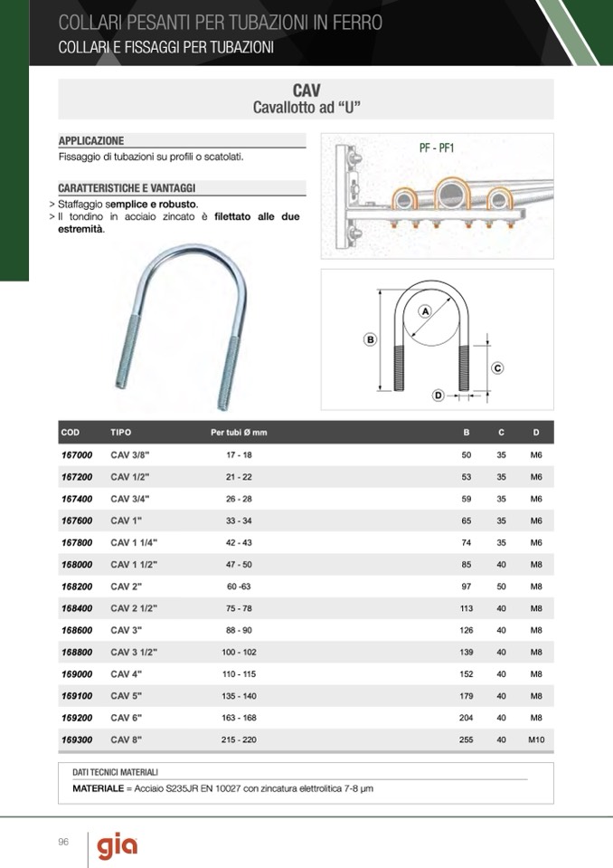 Fissaggio di tubazioni su profili o scatolati.