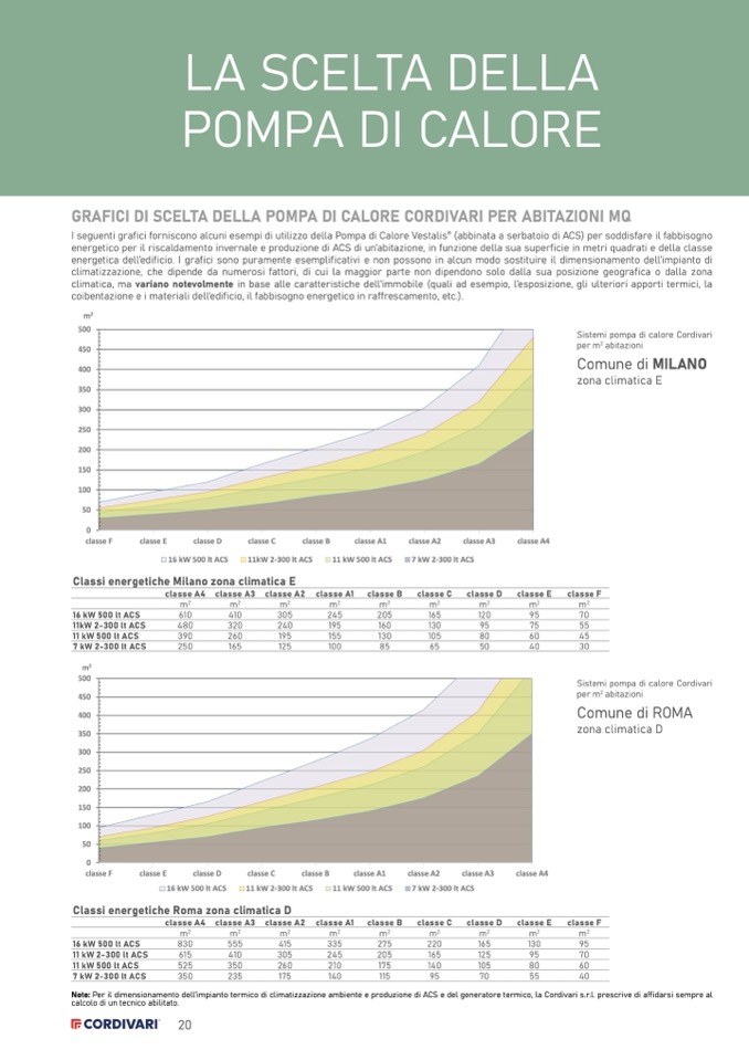 Note: Per il dimensionamento dell’impianto termico di climatizzazione ambiente e produzione di ACS e del generatore termico, la Cordivari s.r.l. prescrive di affidarsi sempre al
