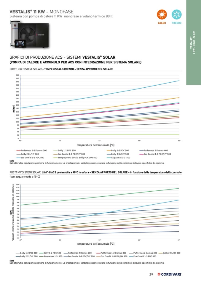 PDC 11 KW SISTEMI SOLAR: Litri* di ACS prelevabile a 40°C in un'ora - SENZA APPORTO DEL SOLARE - in funzione della temperatura dell'accumulo