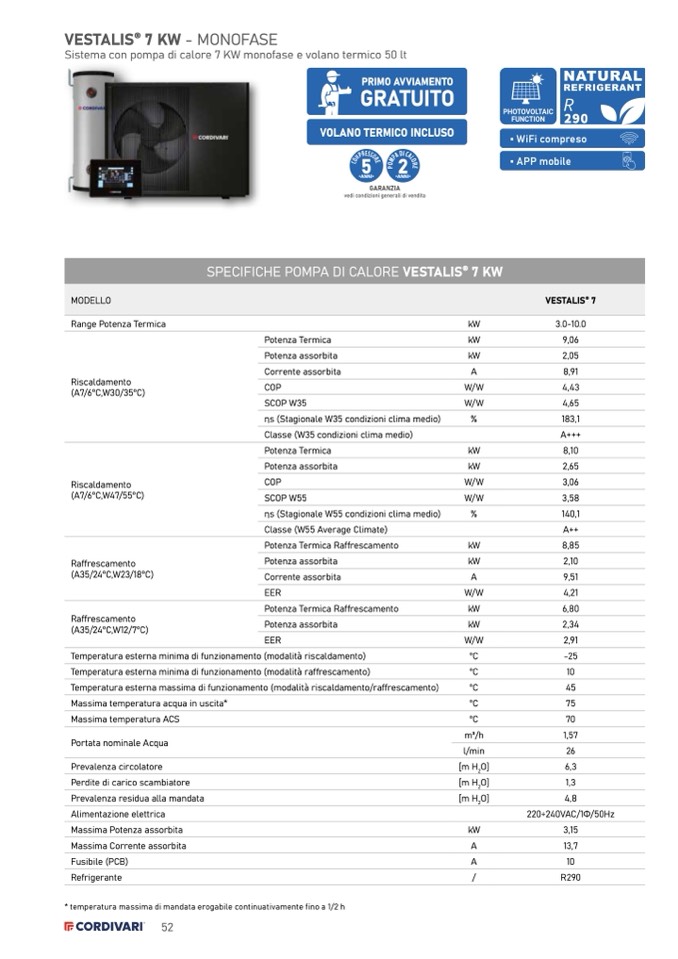 SPECIFICHE POMPA DI CALORE VESTALIS