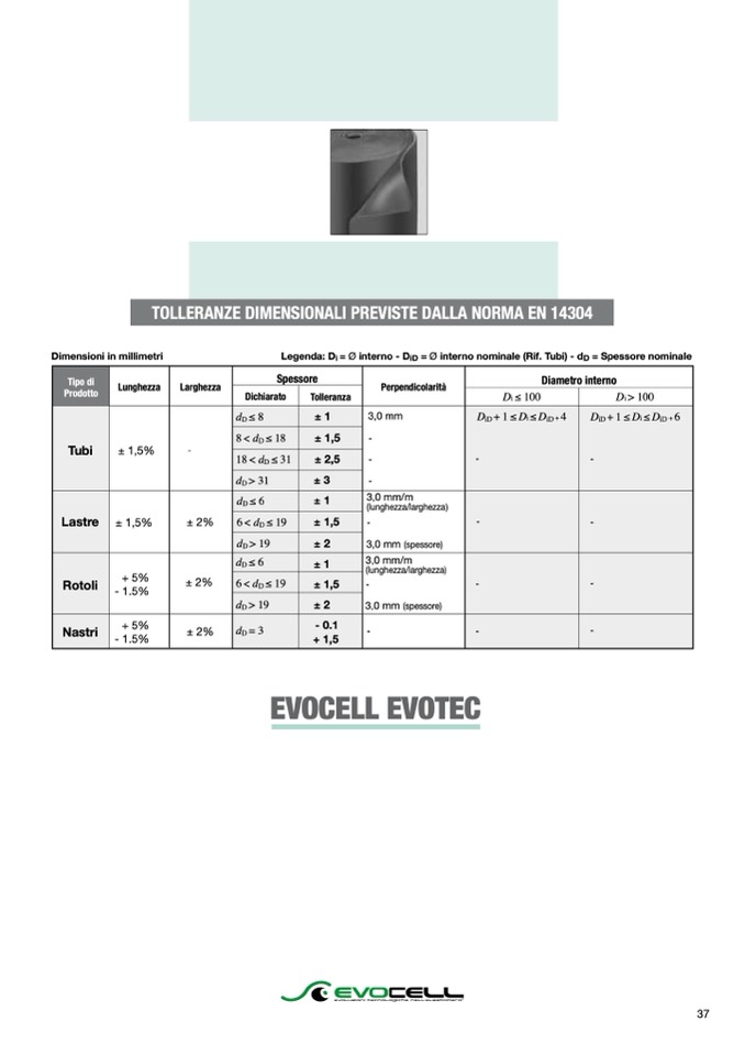 Legenda: Di = Ø interno - DiD = Ø interno nominale (Rif. Tubi) - dD = Spessore nominale