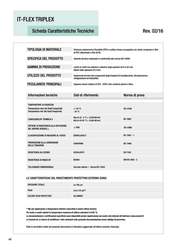 Isolante termico realizzato in conformità alla norma EN 14304.