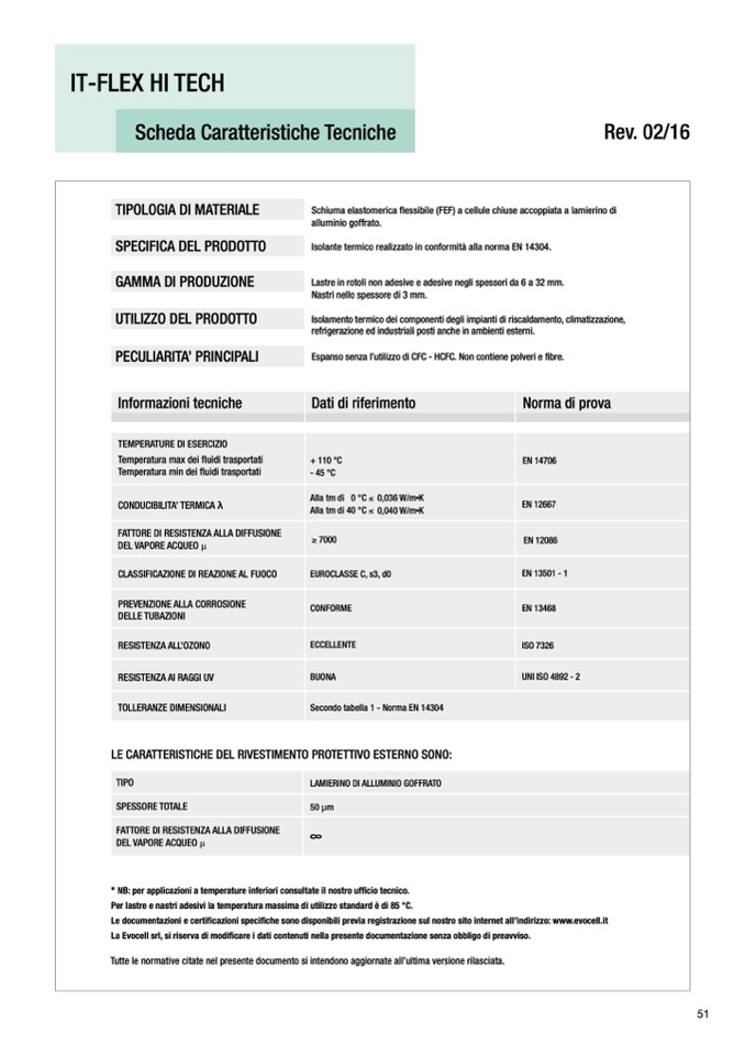 Isolante termico realizzato in conformità alla norma EN 14304.