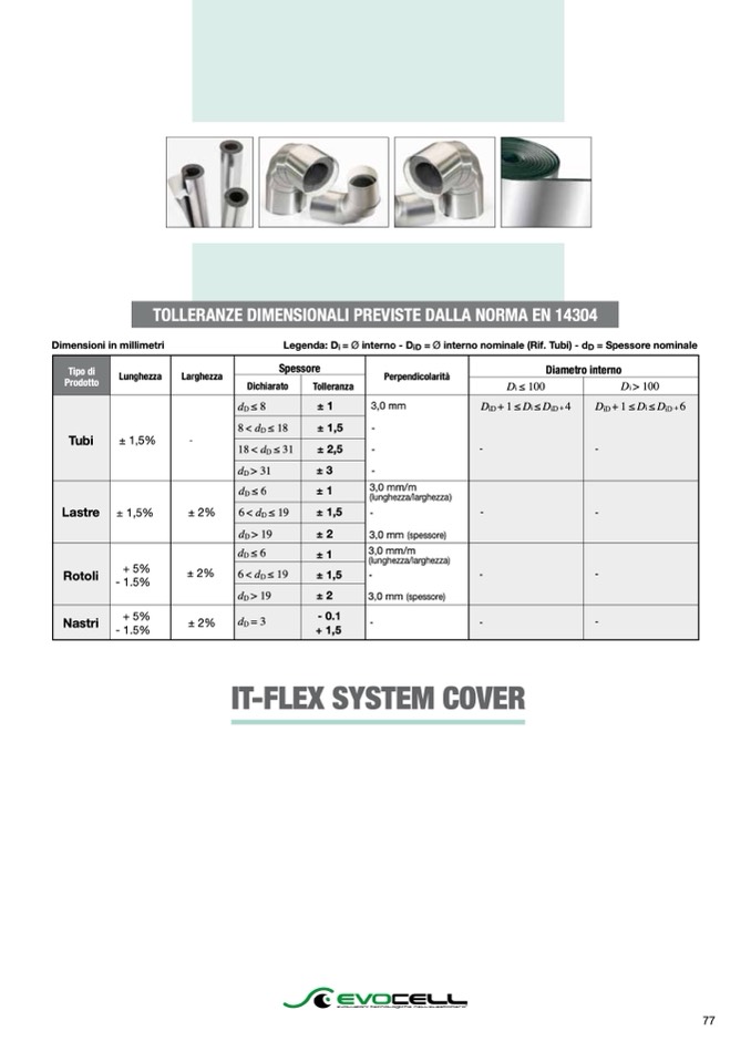 Legenda: Di = Ø interno - DiD = Ø interno nominale (Rif. Tubi) - dD = Spessore nominale