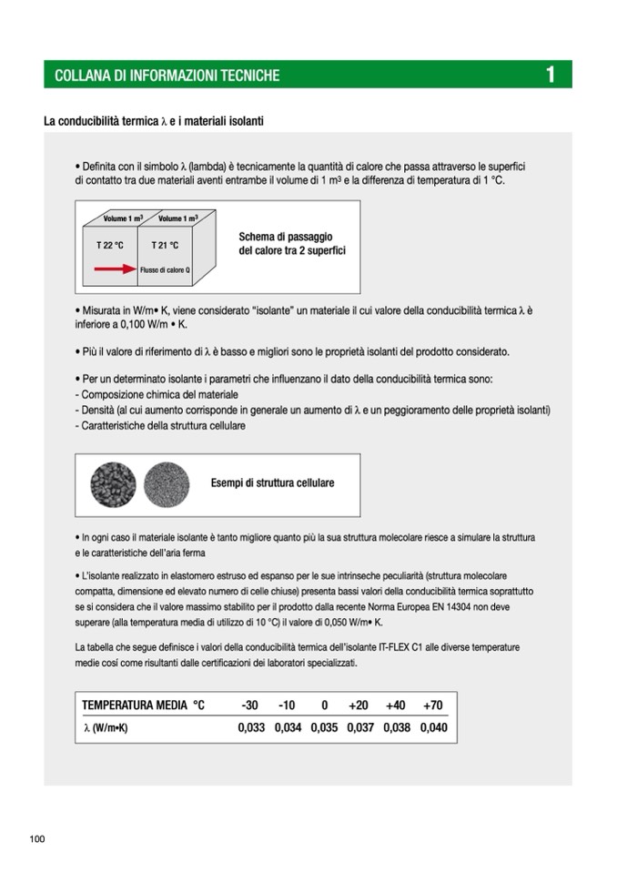 La tabella che segue definisce i valori della conducibilità termica dell’isolante IT-FLEX C1 alle diverse temperature