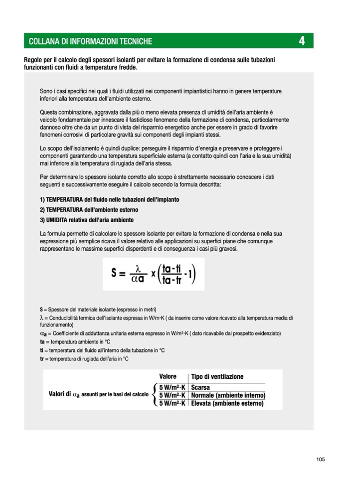La formula permette di calcolare lo spessore isolante per evitare la formazione di condensa e nella sua