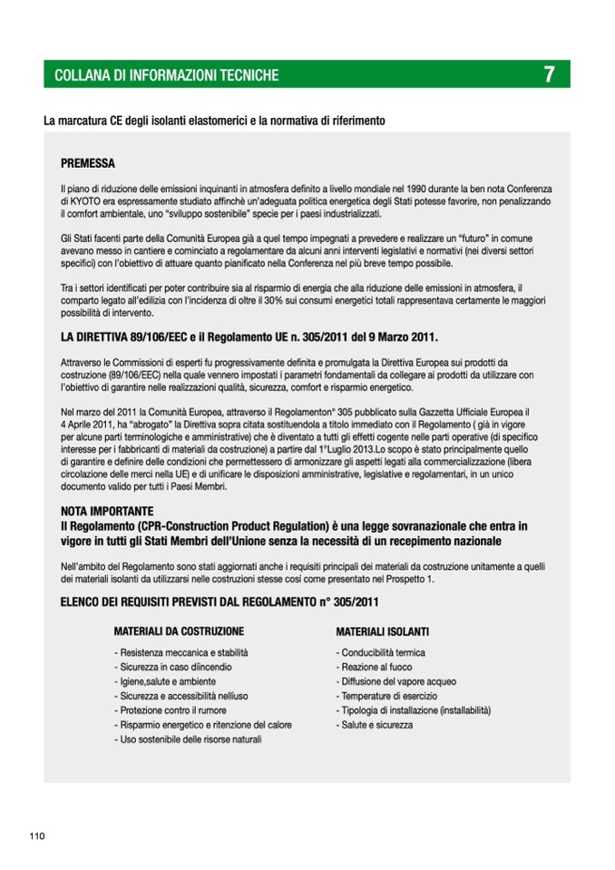 dei materiali isolanti da utilizzarsi nelle costruzioni stesse cosí come presentato nel Prospetto 1.