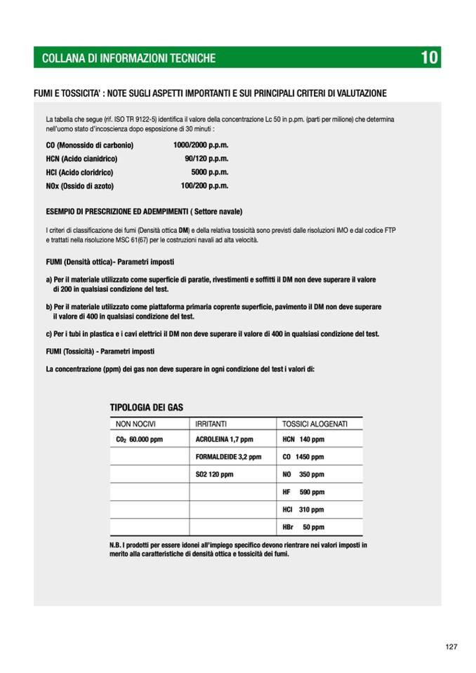merito alla caratteristiche di densità ottica e tossicità dei fumi.