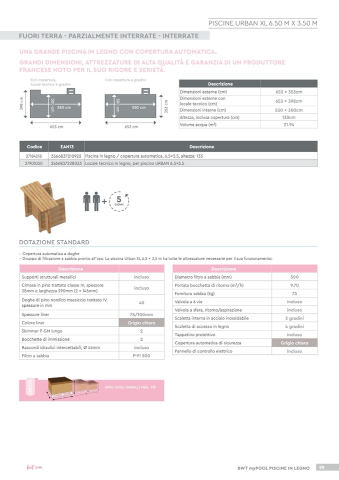Piscina in legno / copertura automatica, 6.5x3.5, altezza: 133