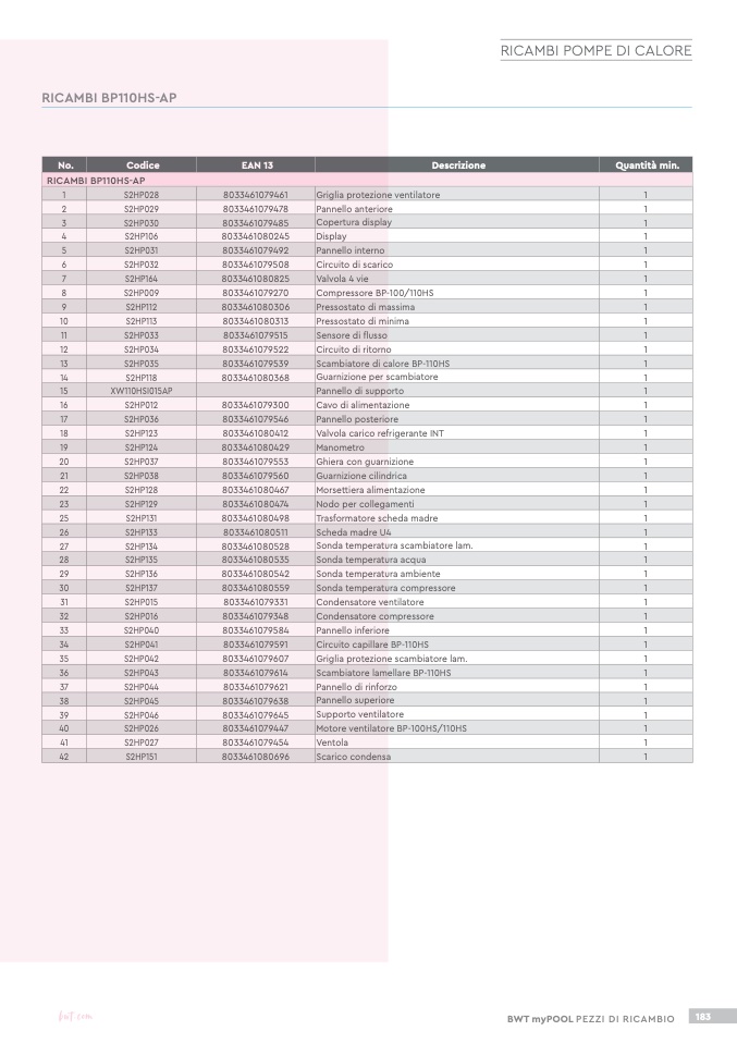 RICAMBI BP110HS-AP