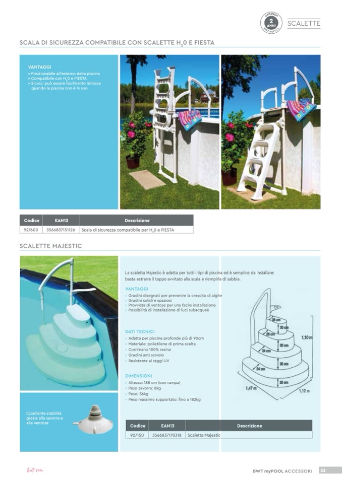 La scaletta Majestic è adatta per tutti i tipi di piscina ed è semplice da installare: