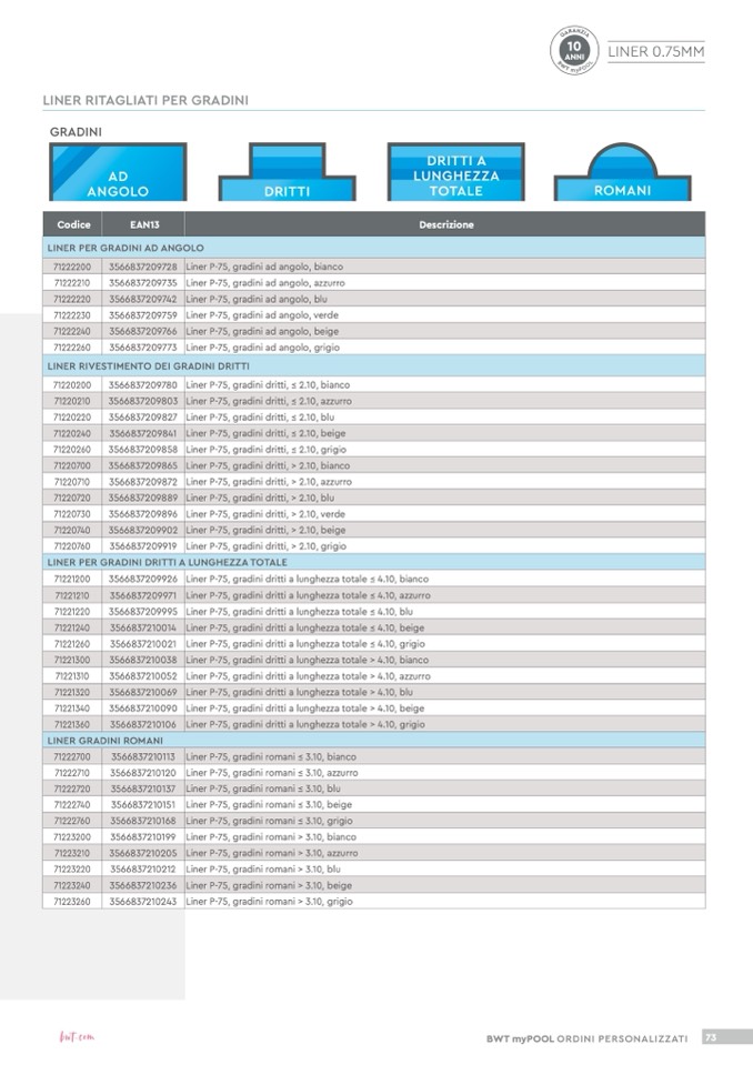 Liner P-75, gradini dritti, > 2.10, azzurro