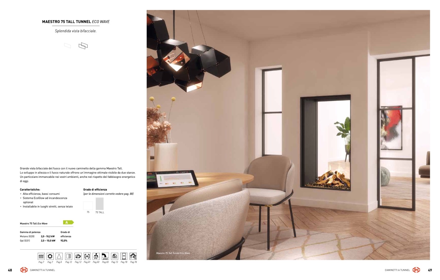 Lo sviluppo in altezza e il fuoco naturale offrono un’immagine ottimale visibile da due stanze.